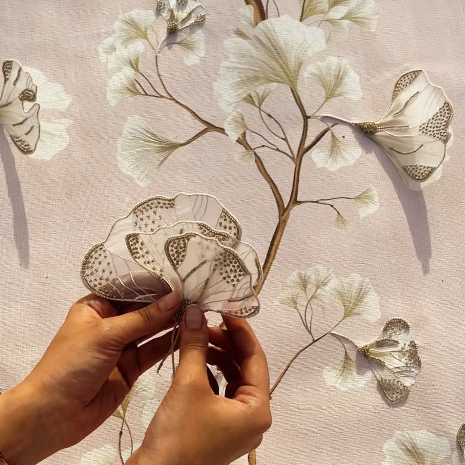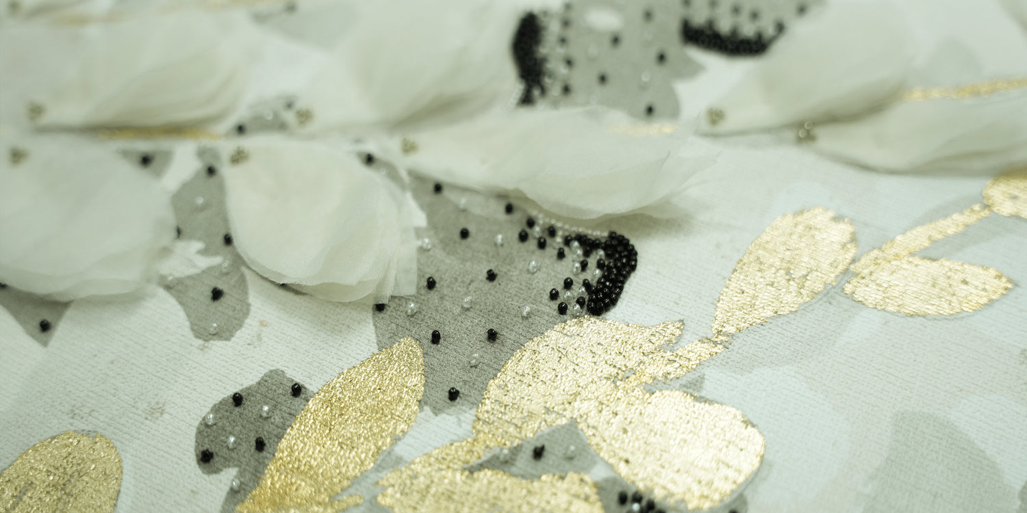 The height of our craftsmanship. Our multi-work wallpapers combine embroidery, beads, and appliqué in a single mixed-media mural. This collection offers a rich tapestry of textures, designed specifically for the most discerning luxury homes and art collectors.